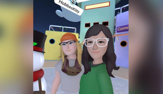 一些因为疫情而被临时取消旅行计划不能在圣诞团聚的亲友,也在Horizon Worlds中跨越千里见了面,一起聊天逛街,一起玩游戏,一起参加活动等等。高兴的时候跟还可以举起手腕,一起“咔嚓”自拍保存下来,甚至还可以把大家在元宇宙一起玩的视频剪入自己的Vlog。