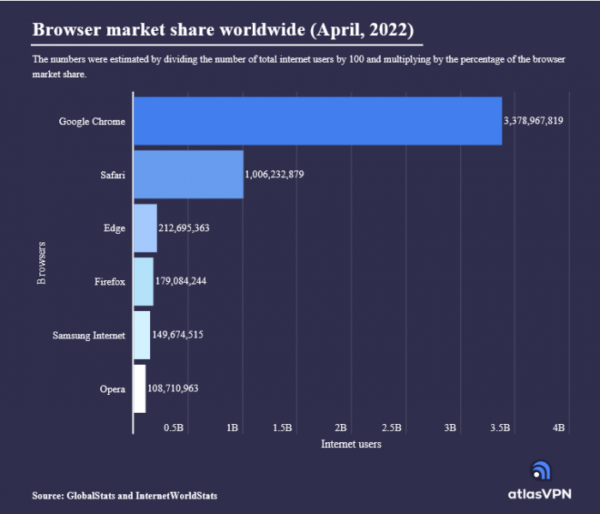 这些统计数据是基于GlobalStats浏览器市场份额的百分比,然后使用Internet World Stats互联网用户指标将其转换为数字,以总结出确切的数字。