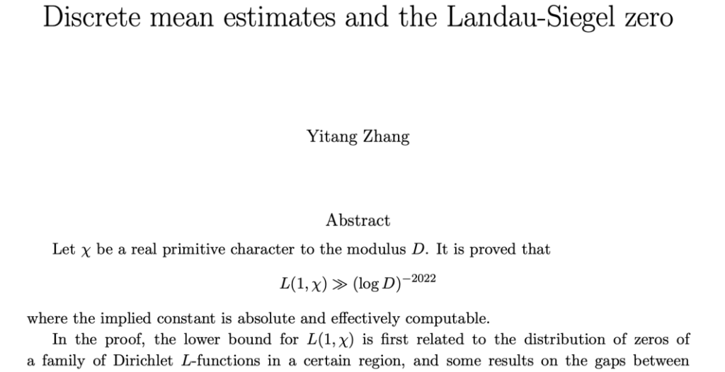 张益唐攻克朗道-西格尔零点猜想的论文,来了!
