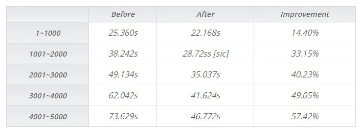 为了得出这个结论,我们用 5000 个文件进行了测试。值得注意的是,改进的程度随着文件大小的增加而扩大。处理速度最快可以提升 58%。测试是在 SABRE i.MX6 Lite 开发板上进行的,使用 Class 4 SD 卡。