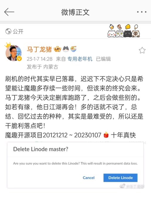 1 月 7 日消息,国内最大的安卓开源系统魔趣 ROM 创始人 @马丁龙猪 今日宣布停止更新,魔趣项目所有数据均已被删除,目前网站(包含社区)也已无法访问。