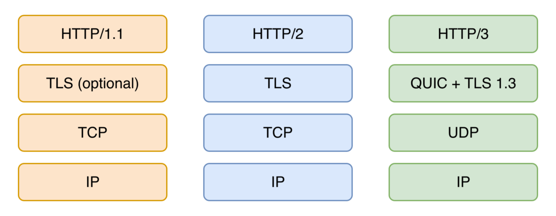 HTTP/2 向后兼容 HTTP/1.1,这意味着客户端和服务器可以使用任一标准进行通信。HTTP/3 的情况并非如此。它不向后兼容 HTTP/2。为了理解其中的原因,我们必须更深入地研究这些协议。