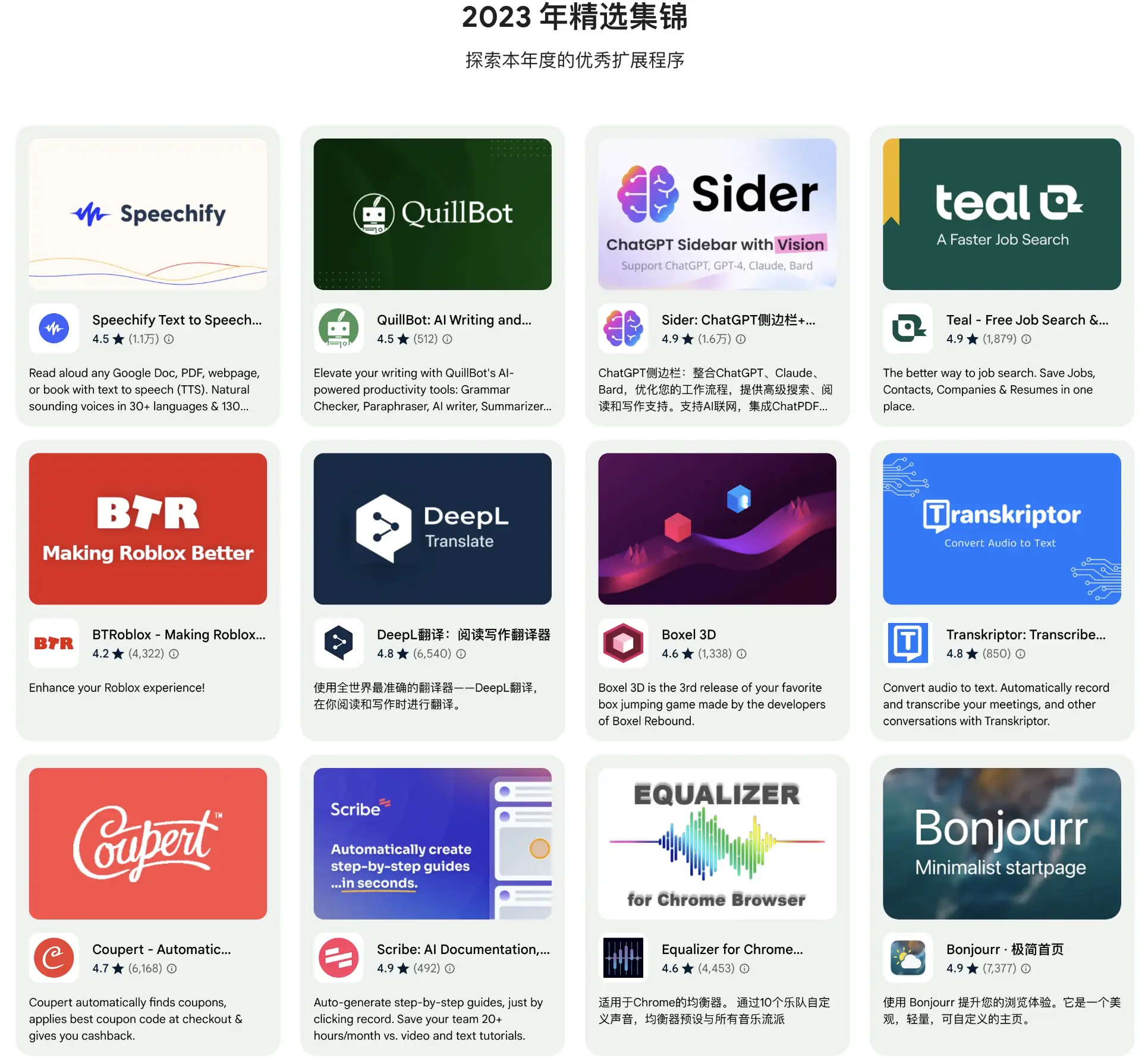 完整榜单:https://chromewebstore.google.com/collection/2023_favorites