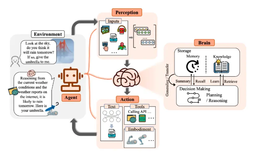 根据复旦大学论文《The Rise and Potential of Large Language Model Based Agents: A Survey》,AI Agents 可以划分为大脑(Brain),感知(Perception)、执行(Action)三大模块化能力。