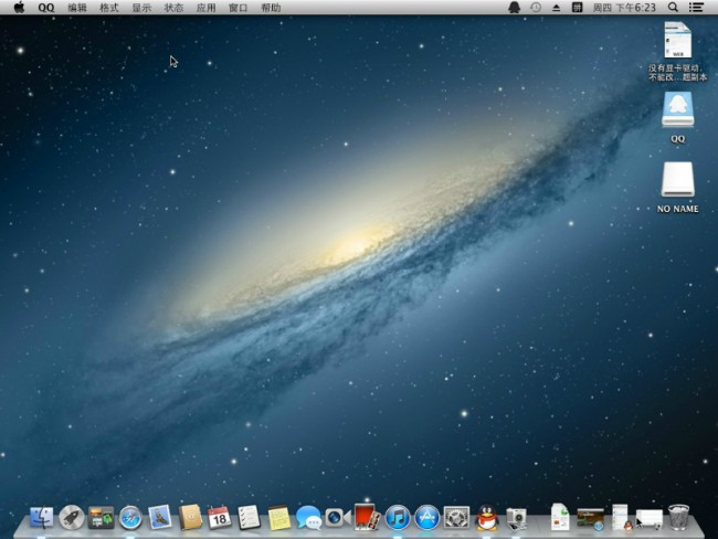 要说的是联想启天M4330台式机虽然是商务电脑的中低端配置,但还算是比较兼容苹果的山狮系统的,当然这个是破解后的苹果山狮系统,折腾了一番,网卡驱动是安装上了,但是显卡驱动却成了拦路虎。本来我的这台电脑的显示器的分辨率是1366×768,因为没有合适的显卡驱动,安装成功的OS X Mountain Lion 的分辨率总是显示了1024×768。无论你是怎么弄,它都是这样子。还是英特尔显卡HD2000的问题。但毕竟是第一次将苹果系统安装到PC机上,心中难免激动,有一种小小的成就感。