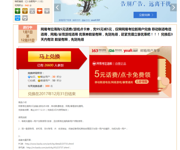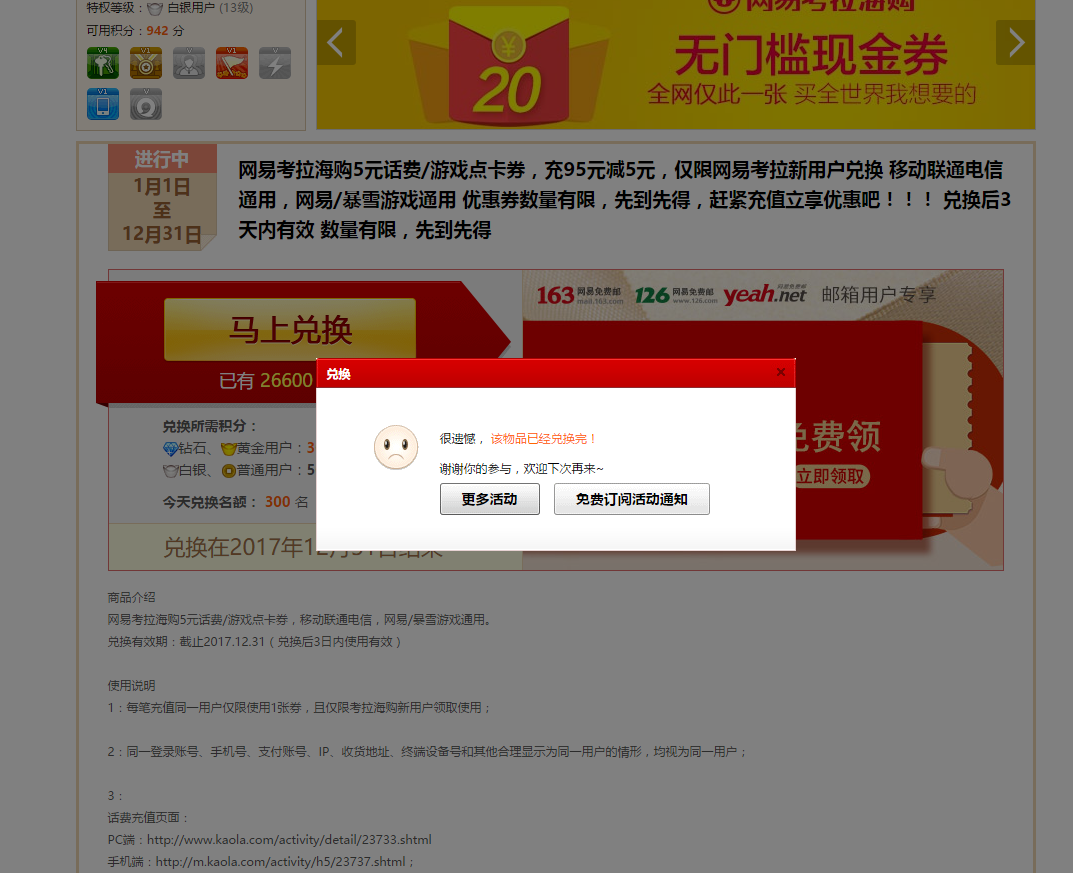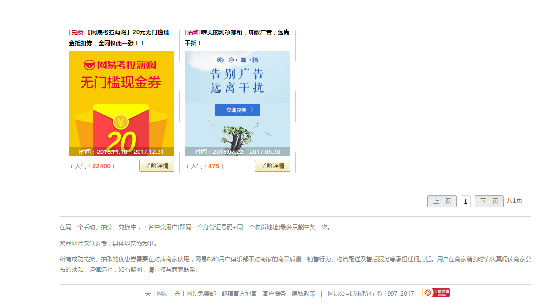 没诚意!网易邮箱积分兑换活动