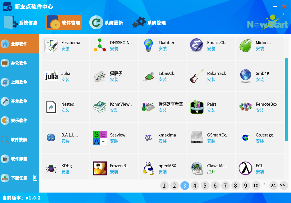 2.提供内容丰富的软件中心,支持一键快速安装、在线升级、专题分类、软件分享。