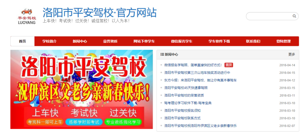 2016年4月洛阳市平安驾校企业官网建设和主机托管项目